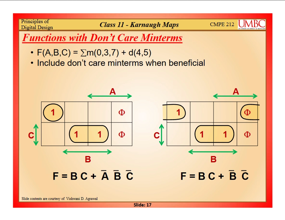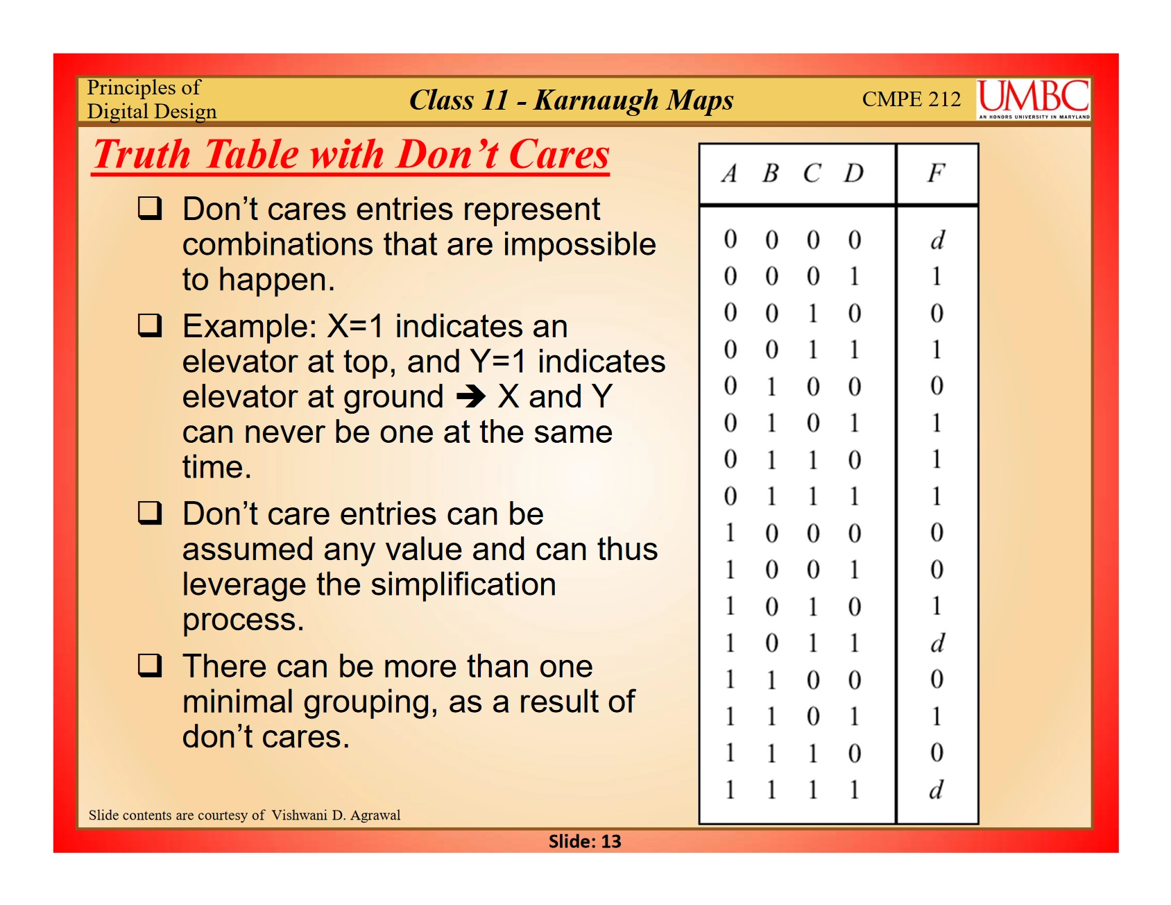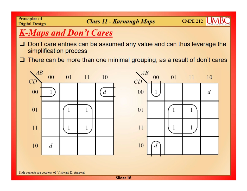 class: 11, slide: 13-18 → K Mapping with Don't Cares