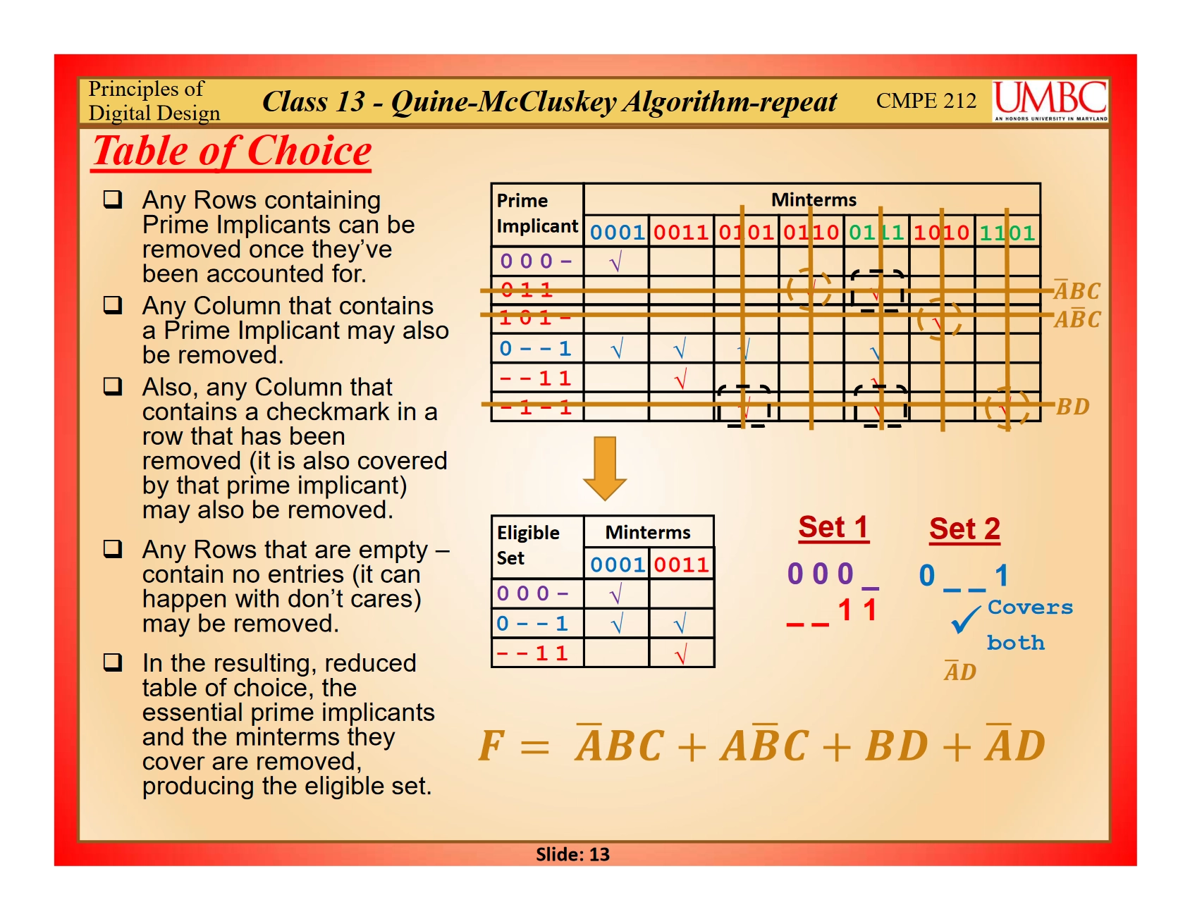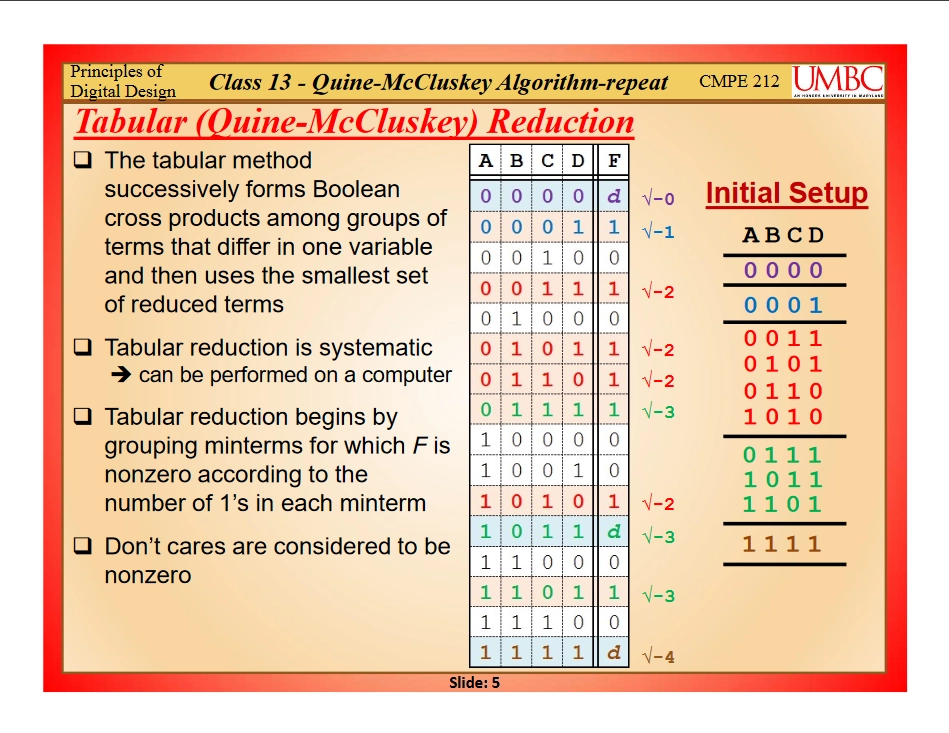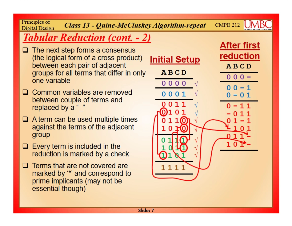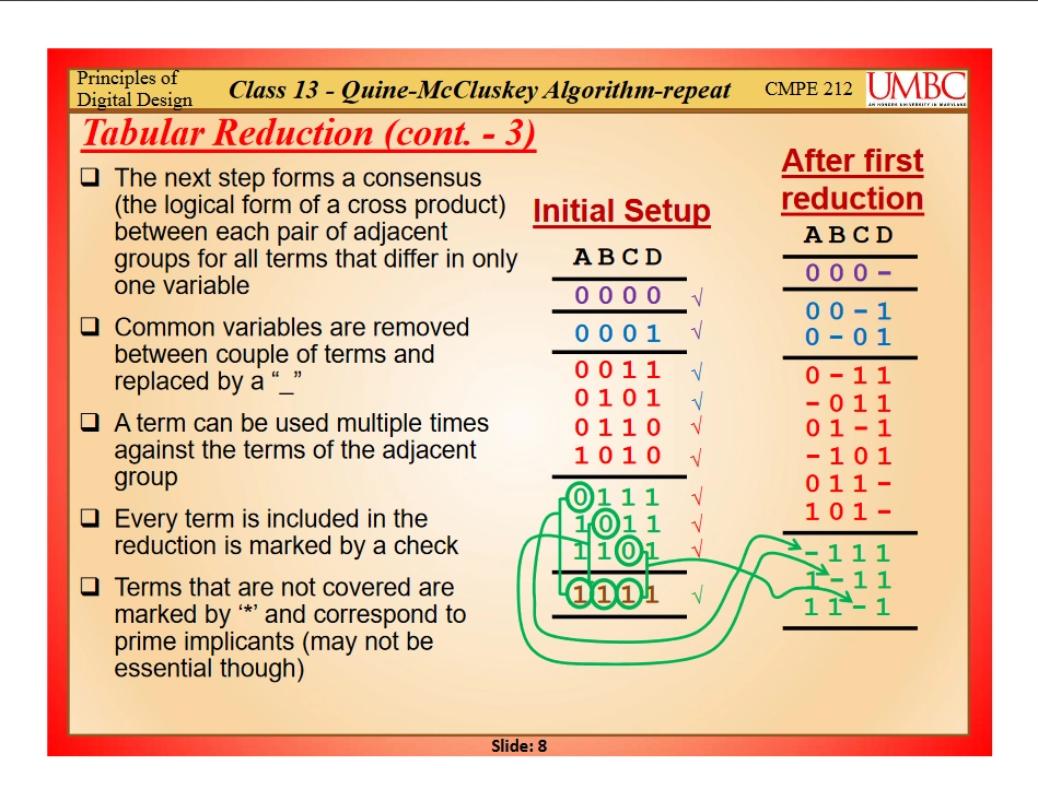 class: 13, slide: 5-13 → Quine McClusky - reduced