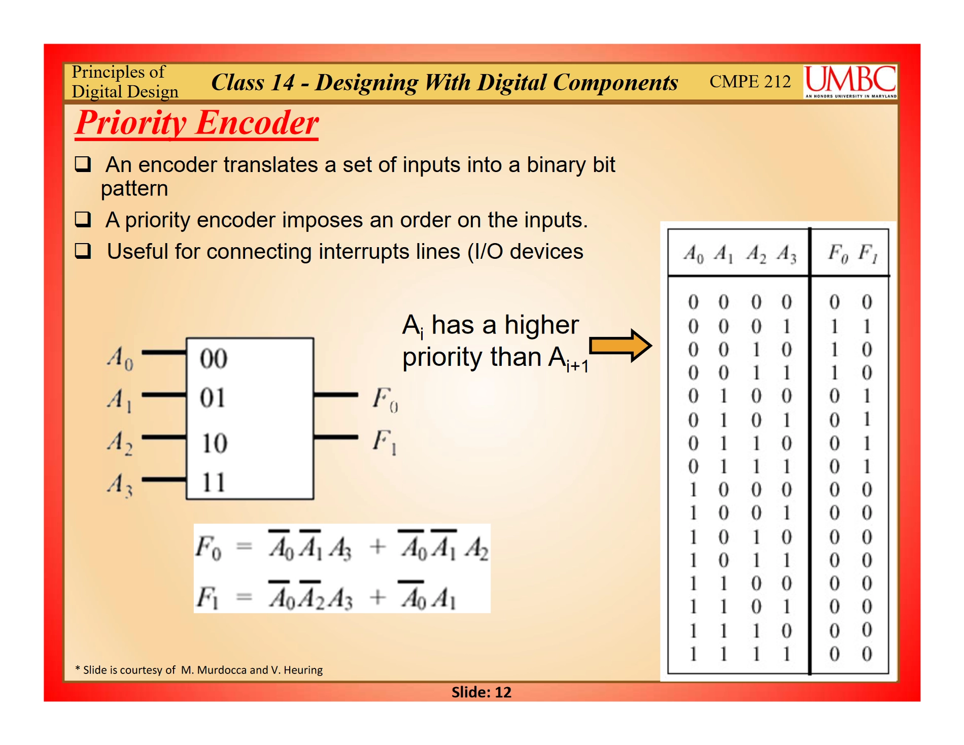 class: 14, slide: 11-13 → Encoder, Priority Encoder