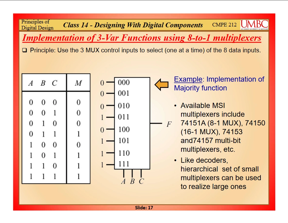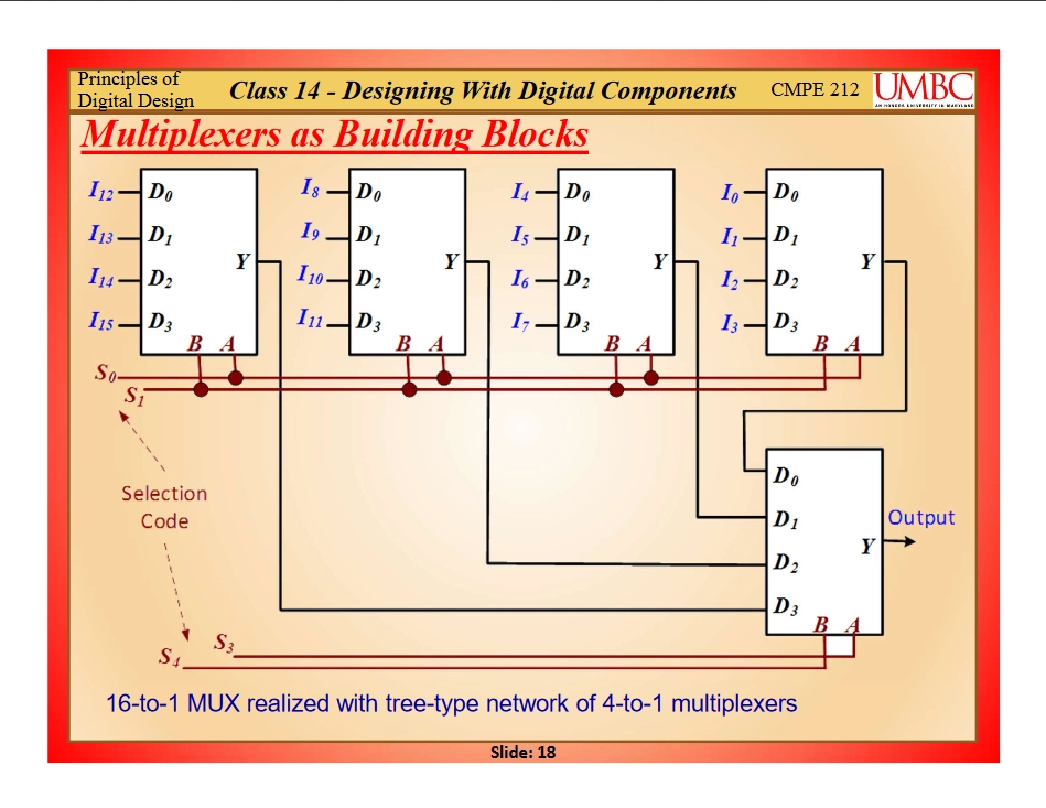 class: 14, slide: 14-18 → Mulitplexer, Building Large Mulitiplexer, Doing a function with one