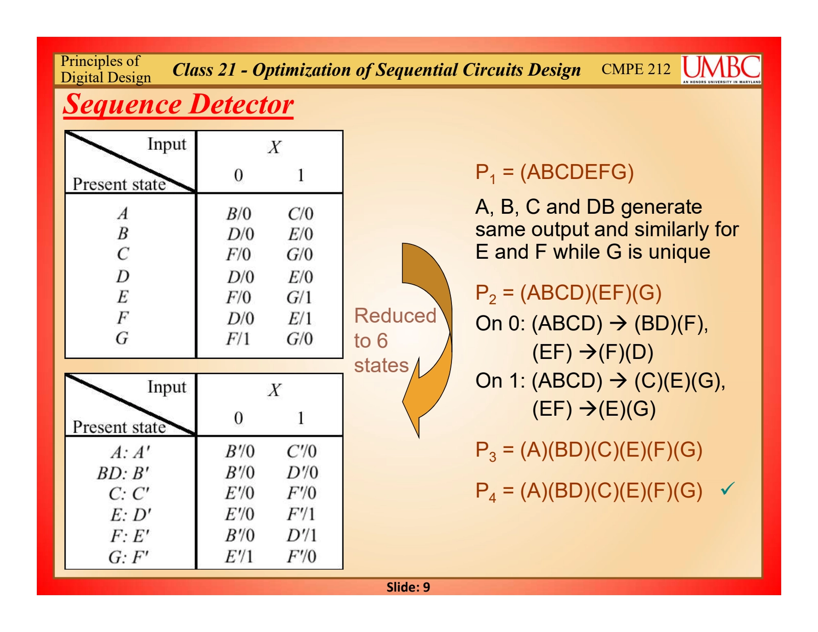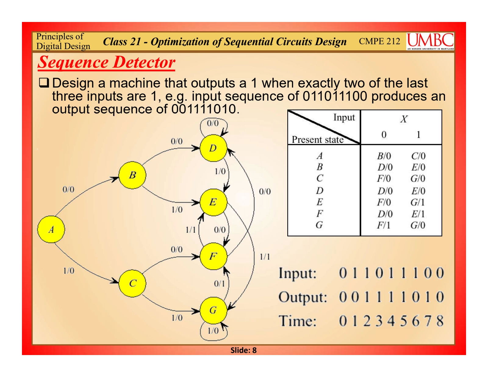 class: 21, slide: 8-11 → Sequence Detector example (thru Circuit Des)